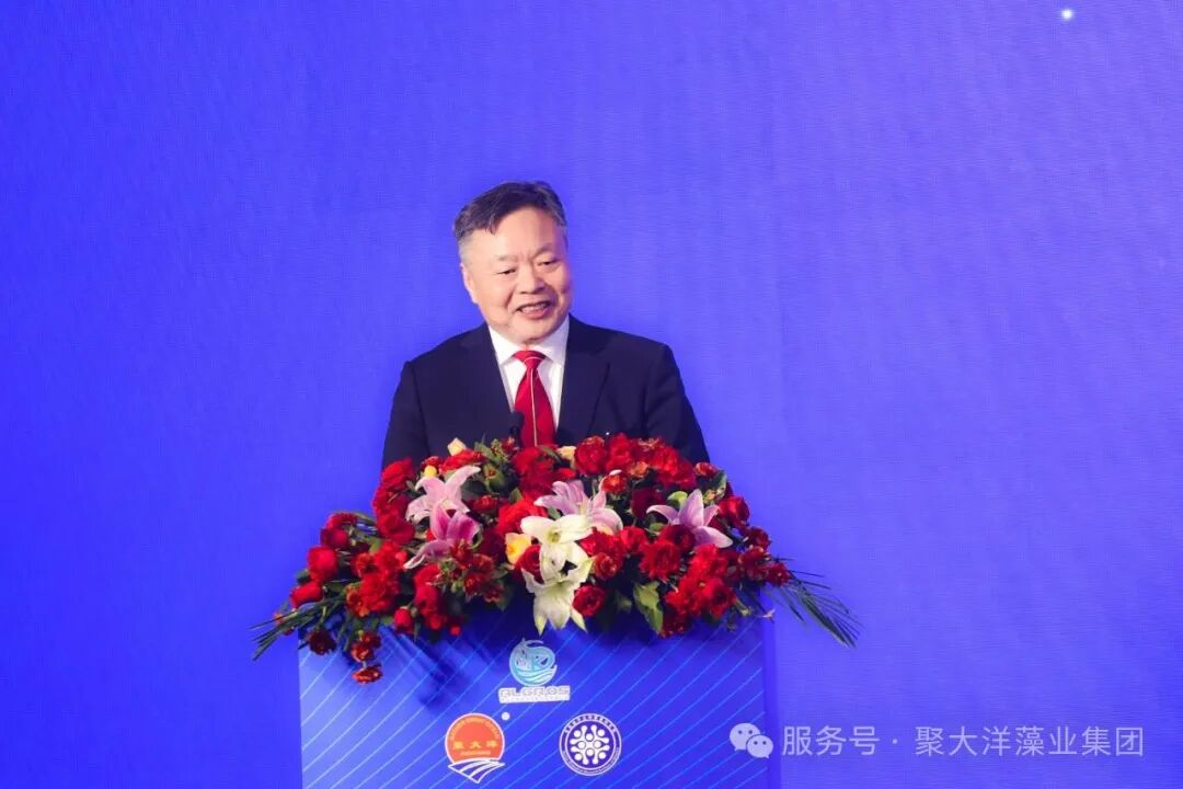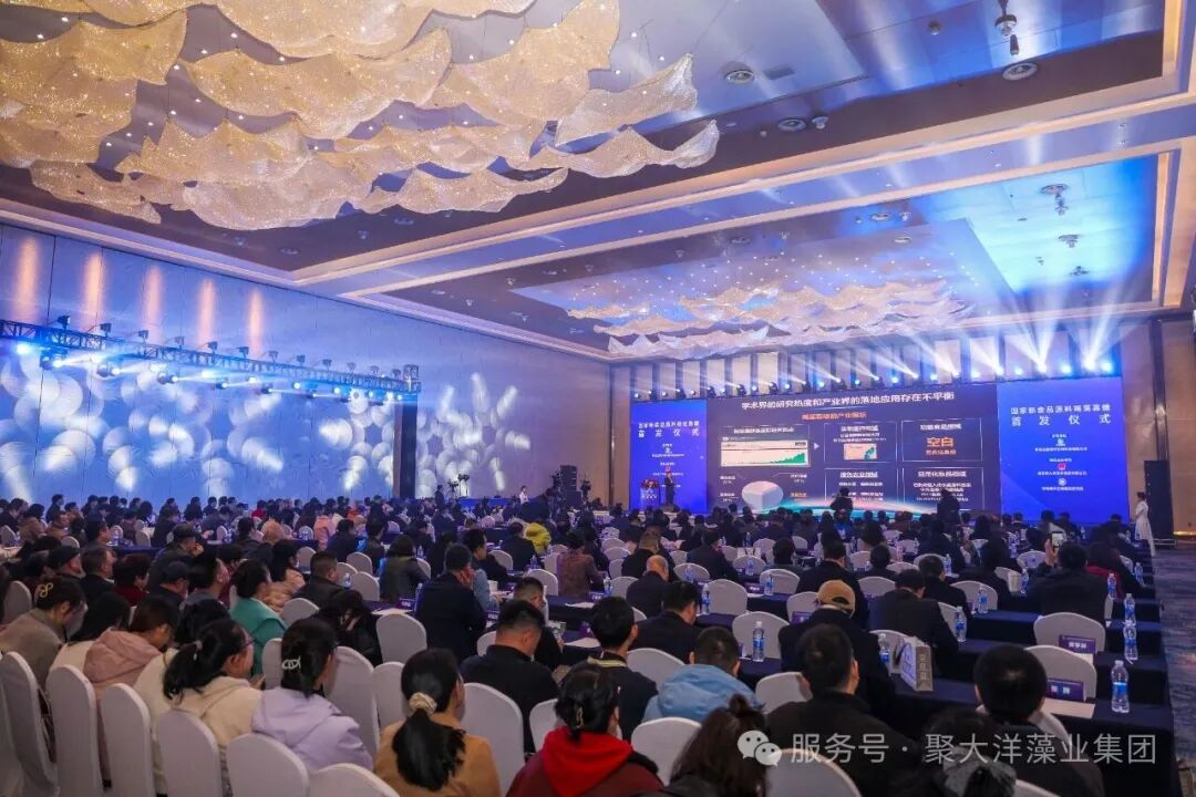 本成果由青岛达康海洋生物科技有限公司(以下简称“达康公司”)发布,仪式由青岛聚大洋藻业有限公司(以下简称“聚大洋”)和中国海洋大学青岛海洋生物医药研究院(以下简称“海药院”)联合主办。中国渔业协会副会长李彦亮,原民政部社会事务司司长王金华,山东省自然资源厅总工程师梅笑冬,青岛市副市长赵胜村,中国海洋大学校长张峻峰,国际欧亚科学院院士、中国海洋大学“蓝药人才”高层次人才计划技术总师、海药院院长杜冠华等领导、专家出席会议,来自政府、科学、产业界的300余名代表共襄盛举。