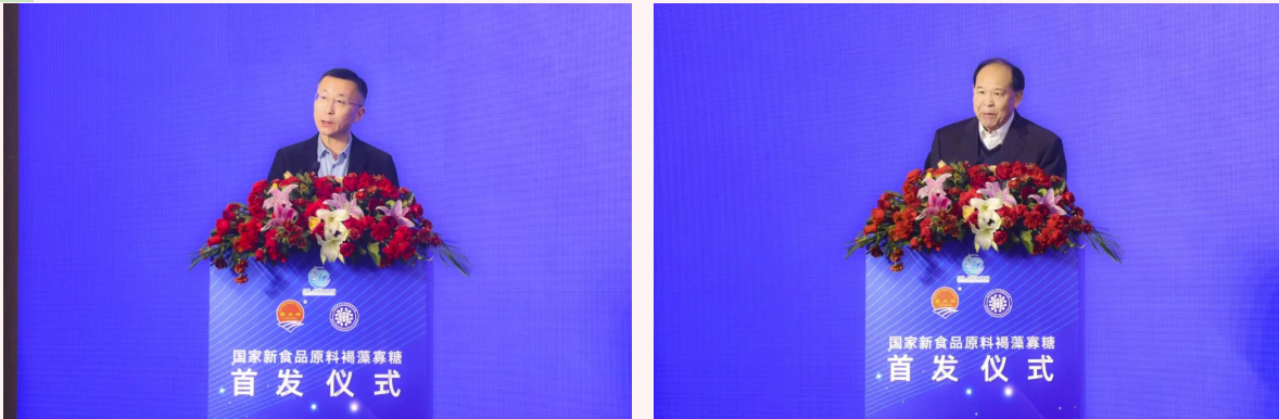 西海岸新区副区长薛山、中国渔业协会副会长李彦亮先后致辞,一致认为褐藻寡糖新食品原料的成功获批,是青岛打造海洋新质生产力,推进海洋生物医药领域协同创新的重要标志性成果。