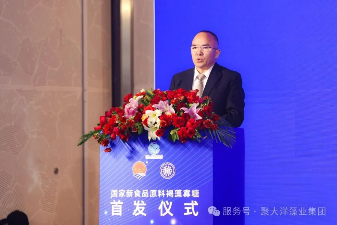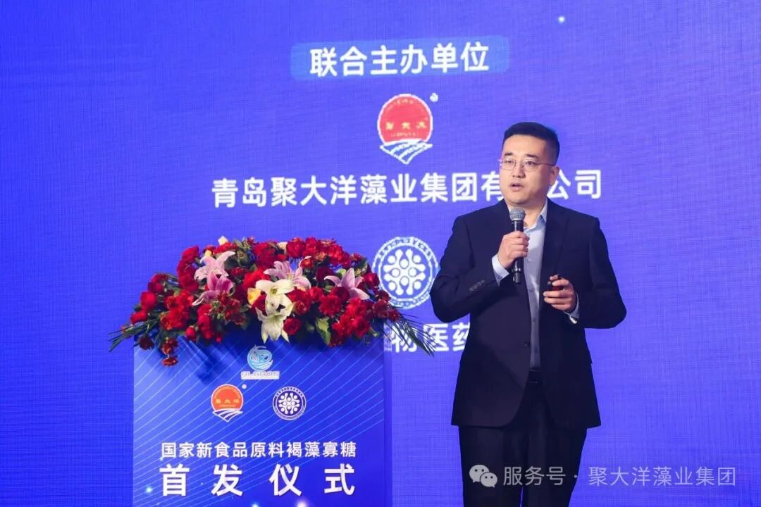 聚大洋董事长吴仕鹏致欢迎辞。他指出,褐藻寡糖获批国家新食品原料,实现了褐藻寡糖在食品领域应用的“零的突破”,标志着褐藻寡糖成功从农业、日化领域向食品领域的关键跨越。3月4日,达康公司斩获食品生产许可,成为全国首家、国际首个具备褐藻寡糖新食品原料合法生产资质的主体。这一系列突破打通了科技成果转化的“最后一公里”,是企业扎根实业、创新报国,践行海洋强国和“蓝色药库”梦想的生动实践。下一步,聚大洋将持续聚焦“蓝色药库”科技成果转化,聚力扩大规模化产能,让褐藻寡糖得以走进千家万户,守护人民健康,助力青岛海洋生物医药产业高质量发展。